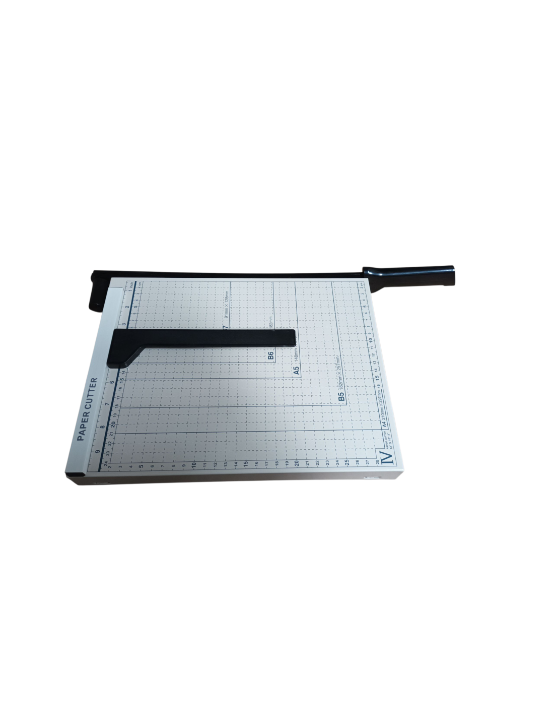 Bardzo wygodne i precyzyjne urządzenie do cięcia ulotek, wizytówek, zdjęć. Dzięki gumowym nóżkom gilotyna nie ślizga się po blacie. Gilotyna posiada ruchomy ogranicznik formatu co ułatwia przygotowanie dokumentów do cięcia. Na końcu noża znajduje się wygodna rączka Urządzenie posiada wygodną siatkę mierniczą w centymetrach z wyróżnionymi standardowymi rozmiarami B7, B6, A5, B5, A4.