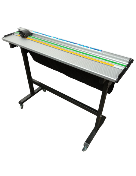 Profesjonalna gilotyna krążkowa do cięcia 1500mm, na stojaku z kieszenią na ścinki. Bardzo wygodne urządzenie do przycinania, obcinania wydruków wielkoformatowych, zdjęć.
